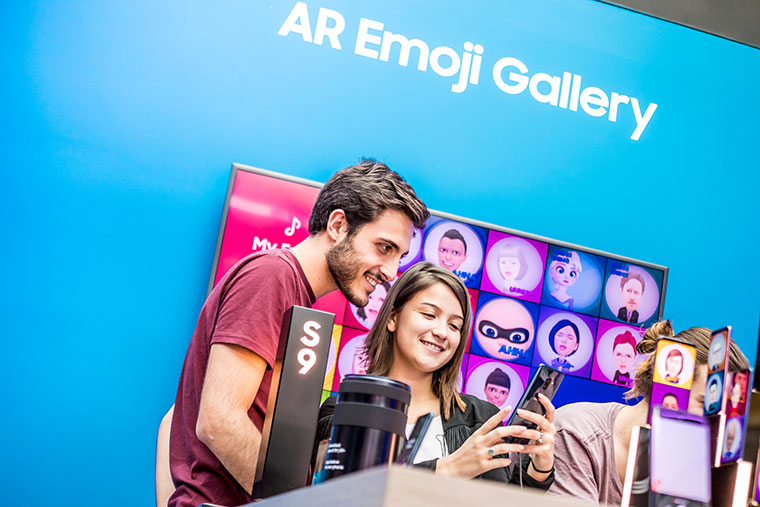 Activaciones experimentales: fanáticos y consumidores estarán expuestos a distintas experiencias impulsadas por Samsung Galaxy S9 y S9 +, como la Tabla interactiva, la Galería My Emoji, el Desafío de fútbol súper lento y el Galaxy Fitness.