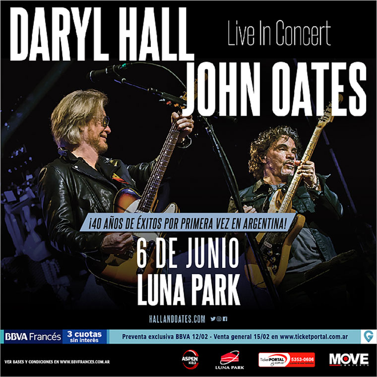 La gira por Sudamérica que realizará el dúo reconocido por el Rock And Roll Hall of Fame, se produce después de su tour del año pasado en el cual Daryl Hall y John Oates compartieron con la banda Train. Show que fue éxito en ventas en legendarios lugares como Madison Square Garden y The Forum.