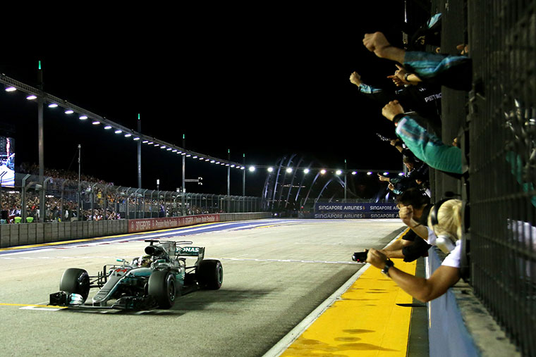 El británico Lewis Hamilton con Mercedes AMG Petronas logró un excelente triunfo en el GP de Singapur y afianza aún más el liderazgo respecto al equipo de Ferrari. Lewis sumó su séptima victoria en lo que va de la temporada y alcanza los 263 puntos. Cerraron el podio Daniel Ricciardo (Red Bull) y Valtteri Bottas, también de Mercedes AMG Petronas.