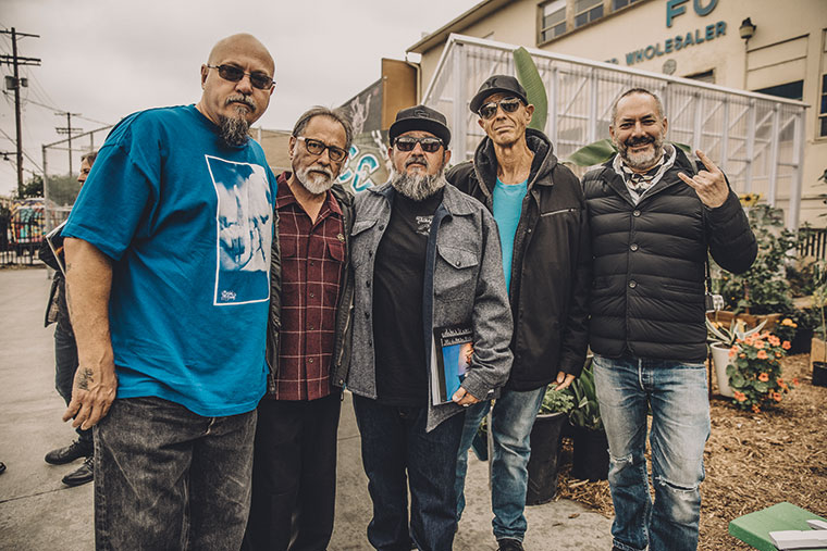 Estevan Oriol, Chaz Bojorquez, Bobby Ruiz (Tribal Gear), Craig Stecyk III y Tuti Gianakis en la muestra Beyond the Streets
