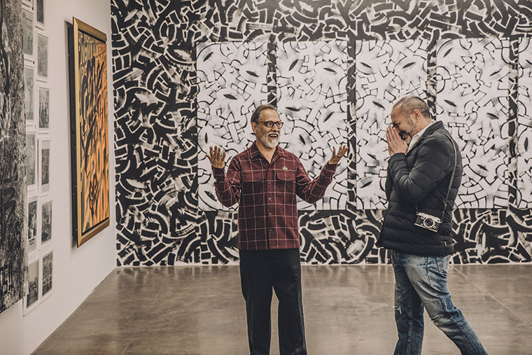 Chaz Bojoquez en la muestra Beyond The Streets contando anécdotas de su historia con la pintura y graffiti callejeros