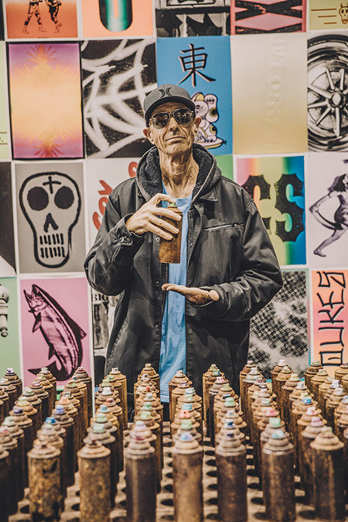 El pionero Craig Stecyk III, que fusionó su pasión por el skate con la fotografía y el arte en los años ‘70. Junto a Stacey Peralta es el co-director del documental seminal Dogtown and Z-Boys, que narró el actor Sean Penn. Posa frente a su instalación Printing Press en la muestra Beyond The Streets, curada por Roger Gastman, que ya se había lucido en la rupturista muestra en Art in the Streets en el museo Moca.