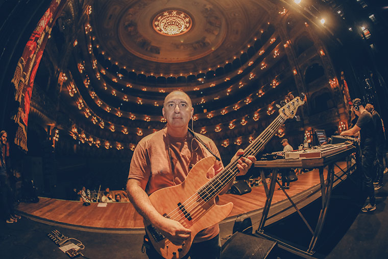 El bajista Javier Zuker en los ensayos previos al show.
