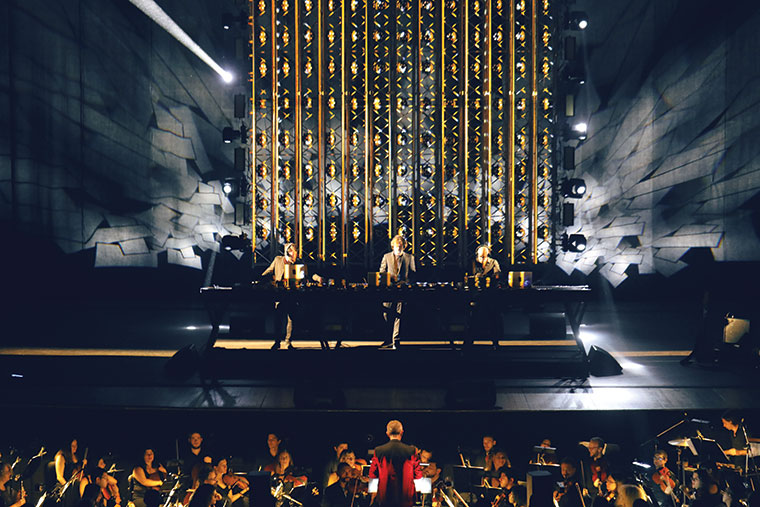 Paul: Si voy a ser sincero, pensaba que iba a ser más difícil de lo que realmente fue. Venimos hablando hace un año y medio de esto, y toda la primera parte fue hecha sobre bases de orquesta hechas con computadora. Entonces, hasta el momento de sentarte frente a una orquesta no lo sabés, pero la verdad es que desde el primer ensayo -sacando alguna cosita- entró todo bien. Ahí te das cuenta que pueden convivir tranquilamente. Ajeno a los ensayos, esto también es medio lo que te pinta en el momento, porque la emoción a veces está en un track o en otro. Digamos que hay mucho de acción y reacción.