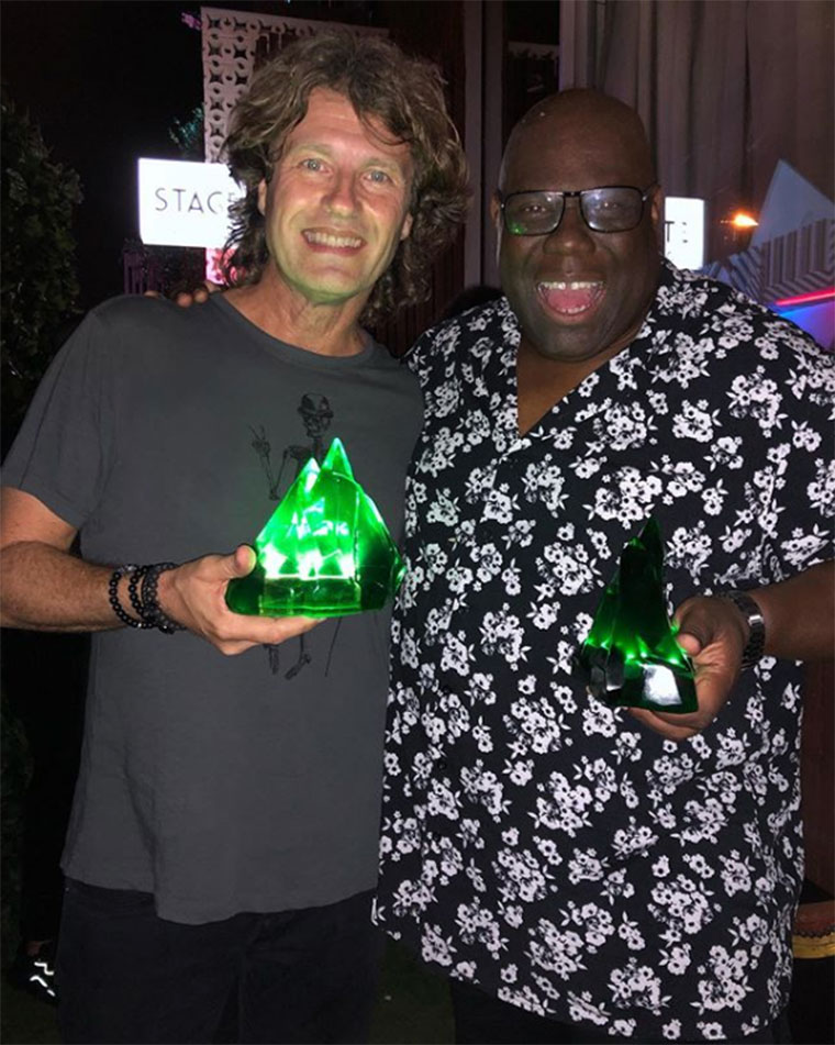 Hernan Cattaneo junto al dj Carl Cox ganador del International DJ supported by K-array