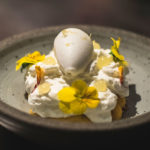 -Minguí, granola costeña, espuma de leche de coco y sorbete de limonada de coco.(Vino: Picum espumante).