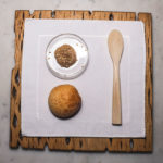 -Casabe con mantequilla batida con pasta de ajonjolí criolla.