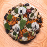 -Frijoles del caribe, aderezo de hierbas criollas, berenjena ahumada y verdolagas (Vino: El Esteco Old Vines Criolla).