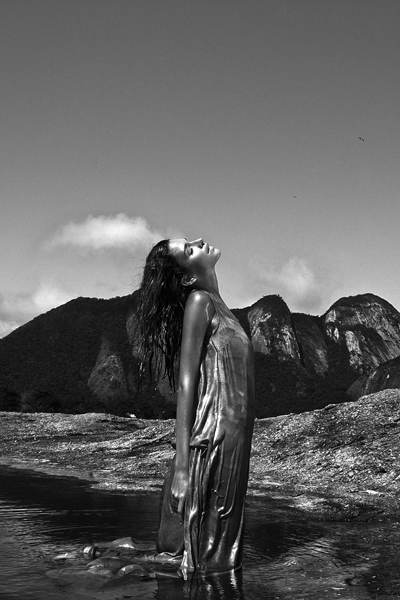 Ella y su forma femenina, junto al  mar y las piedras nos hablan de la naturaleza y exageran sus ángulos dejándonos deseosos de más y más. Itacoatiara, el escenario, es una de las playas recónditas que esconde la gran ciudad de Río de Janeiro y a la que muy pocos deciden ir, convirtiéndola en un destino único y cuasi virgen. Grandes rocas y un mar azulado nos develan su misterio y nos invitan a quedarnos.
