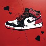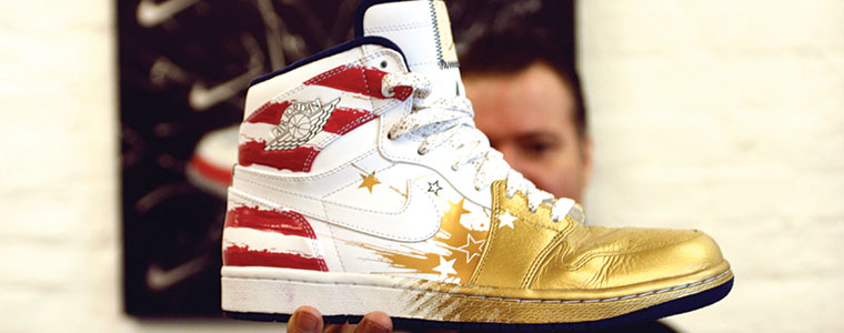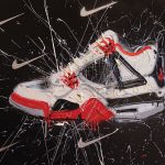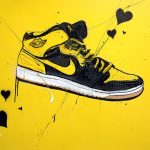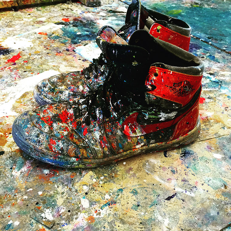 El pintor Dave White, desde Liverpool, nos confiesa su amor por las zapatillas Jordan y nos cuenta detalles de su remix con las Aj1 Wings Of the Future. “La primera Jordan que compré fue la Air Jordan 1 en 1985, y la última fue otro par de Black AJ V. Mi modelo favorito es la V. Recuerdo que cuando estaba en la facultad de Arte allá por 1990, estaba caminando por el pasillo y un estudiante de moda estaba caminando hacia mí, la luz pegó en sus zapatillas y la lengueta por poco me encegueció, con la silueta del Jumpman rodeada de luz. Fue inolvidable y maravilloso y ahí comenzó mi amor por la V.