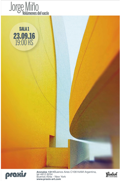 El artista Jorge Miño presenta su nueva muestra llamada Volúmenes del Vacío en Praxis BA (Arenales 1311). Las obras se podrán ver desde el Viernes 23 de Septiembre 19:00 hs al 5 de Noviembre, de Lunes a Viernes de 10:30 a 19.30 y sábados de 10:30 a 14 hs.