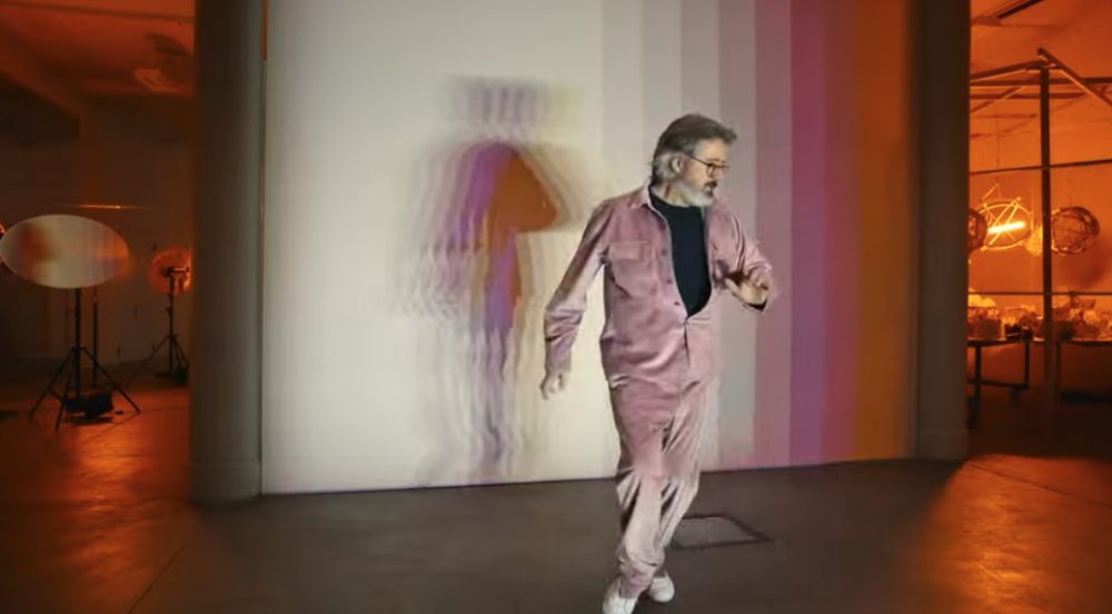 Tanto la escultura como la danza son lenguajes no verbales. A veces, para comunicarse, simplemente hay que moverse.Eso es lo que ocurrió cuando conocí a Peggy. Estábamos almorzando, hablando de nuestros intereses comunes por la psicosónica, el ritmo y el movimiento, y para mostrarle los movimientos de los que hablaba, me puse de pie en el restaurante para bailar. Me encantó que más tarde me pidiera que bailara en el video de uno de sus próximos lanzamientos y que desarrollara el lenguaje visual del mismo. Al unir la danza —exploración corporal del espacio— con sombras de colores, luces y espejos, pude llevar a un contexto totalmente nuevo algunos de los intereses clave que han dado forma a mi arte desde hace mucho tiempo. Trabajar juntos ha sido gratificante y muy divertido.»