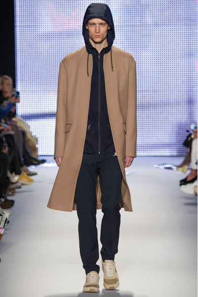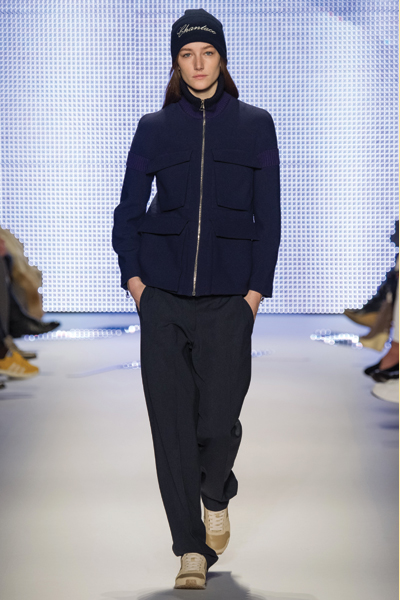 Por el padre de Simone Thion de la Chaume, esposa de René Lacoste. Aire libre y naturaleza fueron los conceptos que dieron forma a esta colección urbana y que supo traducir en confort y protección. Las prendas conservan la morfología característica del diseñador que plasma en abrigos y minifaldas “oversized” a través de una estructura arquitectónica de trazos geométricos. Los tapados y blazers adquieren volumen en los hombros que se suavizan en la construcción de las mangas. Los sweaters y las camisas inspirados en prendas náuticas caen por sobre faldas largas confeccionadas en lanas ultra suaves. Los abrigos se extienden hasta la altura del tobillo y en ocasiones se completan con un rompe vientos removible que repara de las altas temperaturas. Los cuellos tienen un tratamiento de rib, los cierres son a prueba de agua, las polos se convierten en primera piel, y las camisas en chaquetas. El monocromo juega un papel predominante y se traduce en todas las capas. La silueta transmite comodidad como así también la confianza y seguridad para transmitir elegancia cualquiera sea la ocasión.
