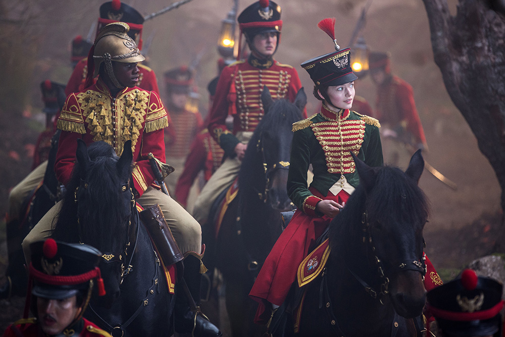 Clara (Mackenzie Foy) se cambia cuando decide ir hacia el Cuarto Reino a enfrentarse a Madre Ginger (Helen Mirren). Su uniforme, hecho de terciopelo verde, lana roja y trenzas doradas, se parece al de un soldado de juguete victoriano pintado con colores brillantes. Beavan investigó la vestimenta de las mujeres soldado para crear el uniforme.