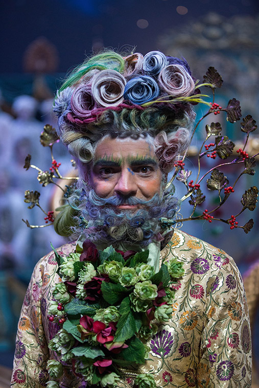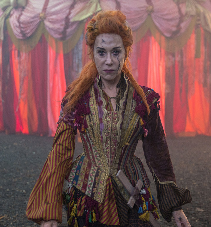 · HAWTHORNE (Eugenio Derbez), regente de la Tierra de las Flores, parece haber salido de una pintura de Giuseppe Arcimboldo. Su traje es florido y adornado, con botones hechos de flores. Las medias de Hawthorne fueron pintadas a mano con un diseño floral que sube por las piernas.