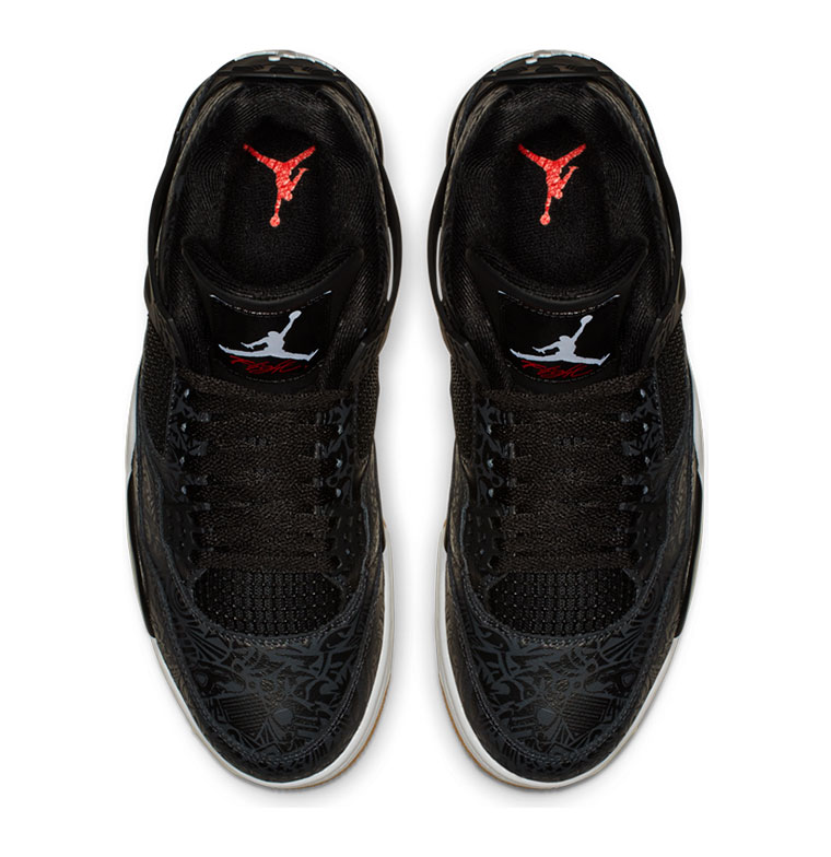 Las «Laser» Air Jordan IV combinan una dosis saludable del clásico de 1989 con una pizca de novedad. La primer edición aniversario de este calzado de basquetbol, en el popular colorway “Bred» y «Fire Red» fue lanzada para el 20 aniversario de Jordan Brand en 2005 y revividos en plata / blanco para su 30 aniversario en 2015.