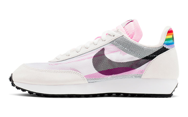 Esta edición especial Air Tailwind 79 presenta una parte superior de malla deconstruida con detalles en azul y rosa. Una franja de arco iris está bordada en el talón y el gráfico de la plantilla representa los ocho colores y significados de la bandera original en 1978.