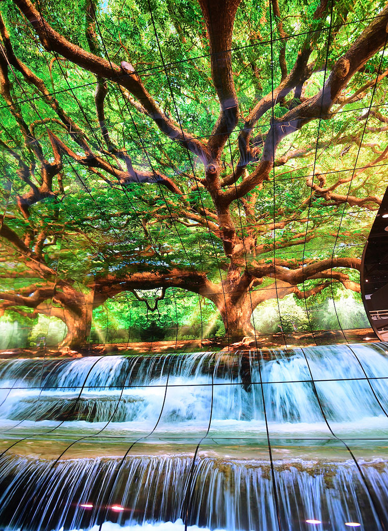En este marco, LG ha desarrollado una inmensa exhibición de LG OLED Falls que ofrece una instalación única e inmersiva pantallas comerciales OLED Open Frame. LG OLED Signage permiten un enfoque completamente nuevo para diseños de cartelería digital innovadores y flexibles. Las pantallas son extremadamente delgadas y ligeras, y lo suficientemente flexibles para ser dobladas.