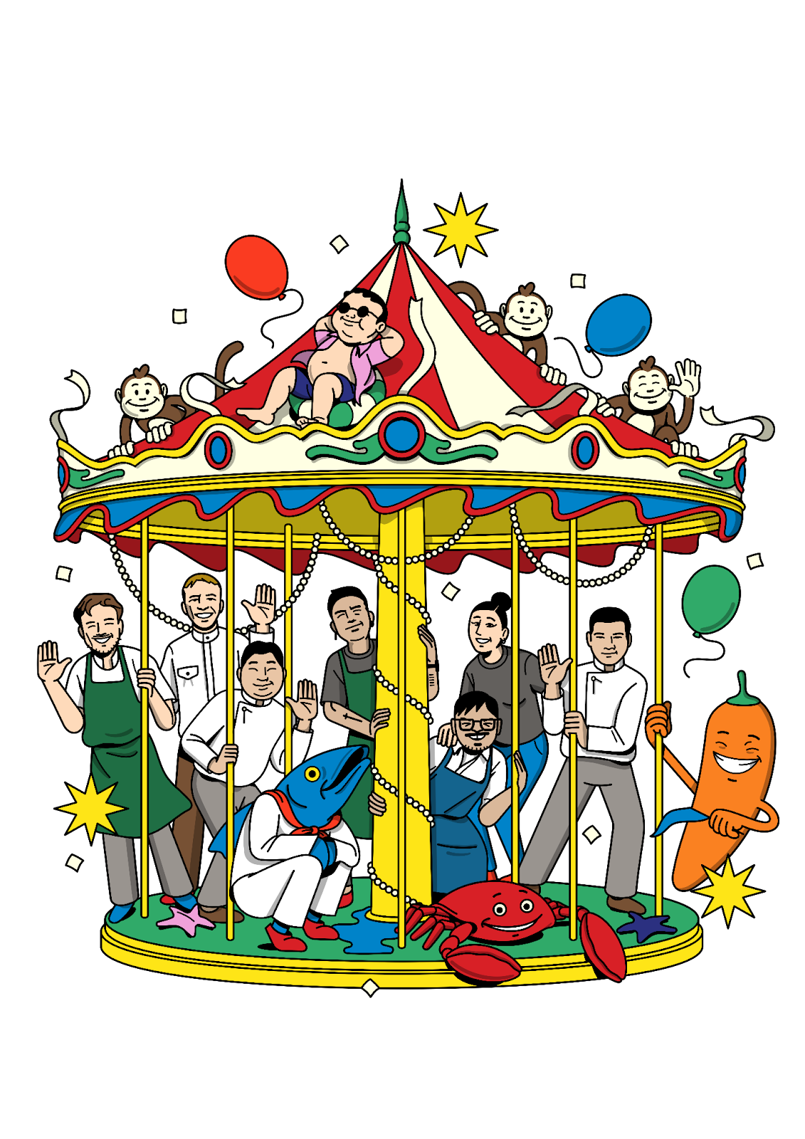 Los comensales diseñan su recorrido nocturno de la manera que prefieran, visitando todas o algunas de las sedes de Calesita. Llamamos sede a los restaurantes que recibirán a los cocineros invitados.