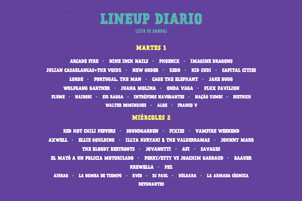 Nacionales e internacionales que se presentarán el 1 y 2 de abril en el Hipodromo de San Isidro, especialmente acondicionado para esta inmensa experiencia de música, arte, gastronomía y actividades alternativas,llamada Lollapalooza Argentina, elfestival más esperado.