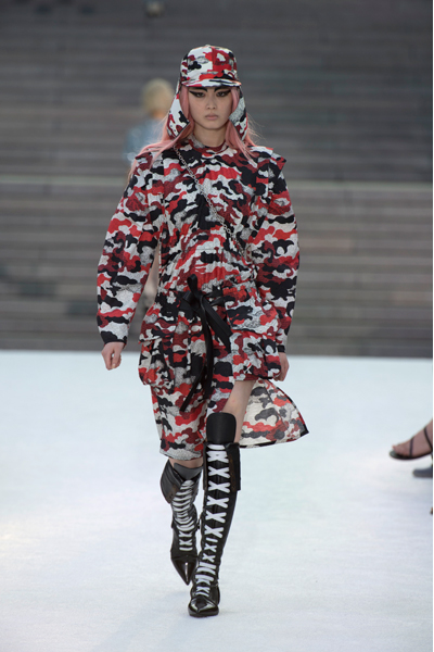 La top model argentina Mica Argañaraz de Lo Management en las pasarelas de LV, Kyoto.