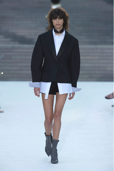 Los pantalones urbanos y las túnicas arquitectónicas están diseñados en el espíritu de Hokusai. Jersey entrelazada y suéteres de cuero recuerdan la armadura de los guerreros japoneses.