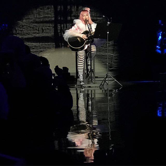 El íntimo show comenzó con el tema ¨Send in the clowns¨con la diva con peluca rosa, traje de Viktor & Rolf , maquillaje con lagrima simil Kiki de Montparnasse por Manray y medias rayadas que no le sentaban del todo bien. Su repertorio fluctuó entre los mega hits de la cantante y un genial remix del tema Toxic de Britney Spears dedicado a Donald Trump. El nuevo presidente norteamericano fue centro de las criticas de la cantante durante todo el agape que cerró con una versión espectacular versión acústica con Madonna en un Ukelele interpretando su himno ¨Holiday¨