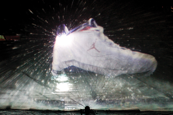 Melo Projection x Nike 13/12/2011 by Staff Leave a comment Para presentar las geniales sneakers Jordan Melo M8, Nike sorprendió a las 2.500 personas presentes con una espectacular proyección acuática 3D en el Pier 54 del Rio Hudson de Nueva York, que contó con la presencia del mismísimo Michael Jordan!