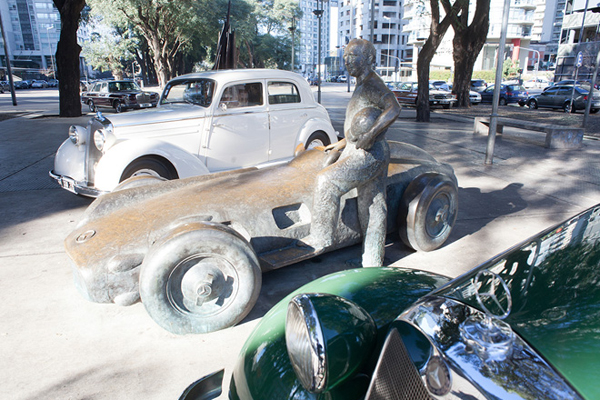 El Monumento a Juan Manuel Fangio fue inaugurado en 2005 cuando se cumplieron diez años de su fallecimiento. Creada por el artista catalán Joaquim Ros Sabaté, la obra que está fundida en bronce y pesa 3,5 toneladas presenta a Fangio a escala natural junto a su máquina, el Flecha de Plata, un Mercedes-Benz W196. Además de la emplazada en Puerto Madero, existen otras cinco piezas similares alrededor del mundo: en Montmeló, España; Nurburgring, Alemania; Monza, Italia, en Montecarlo, Mónaco; y frente al Museo Mercedes-Benz en Stuttgart, Alemania.