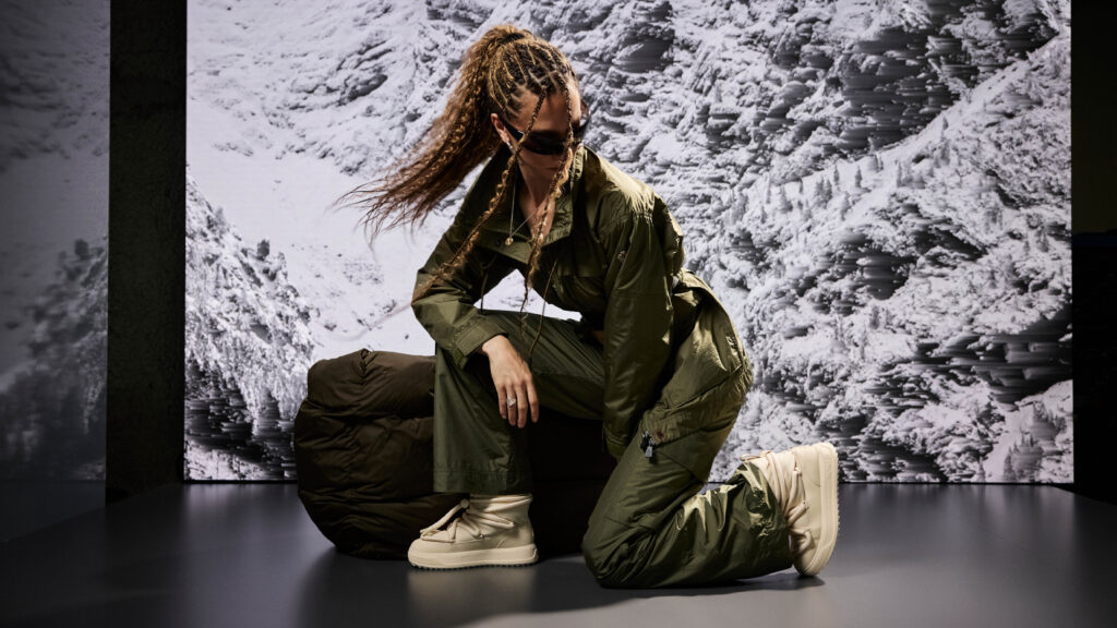 Grandes pantallas digitales sirvieron como escenarios inspirados en la montaña, ofreciendo un entorno similar a un estudio para la creación de contenido. Un anfitrión especializado guió a los invitados a través de la visión del calzado de Moncler: estética sofisticada, tecnicidad superior e innovación utilitaria, plasmada a través del diálogo auténtico y las conexiones con la comunidad.