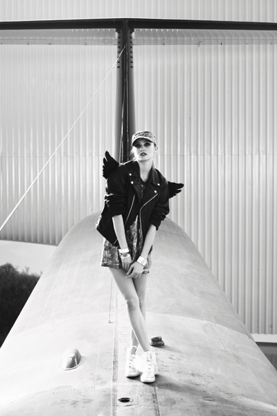 gorra camuflada y pulseras REMIX campera de cuero negro con alas, vestido lentejuelas