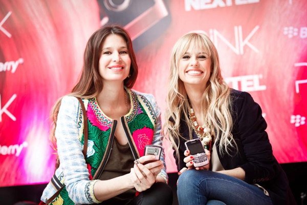 Dolores Barreiro junto a Mariana Fabbiani en la presentación del modelo PINK by Nextel Blackberry.
