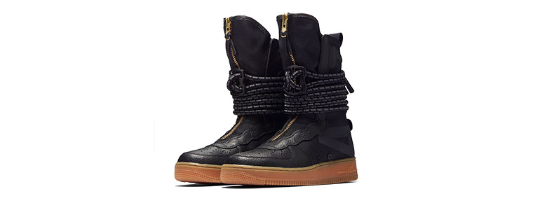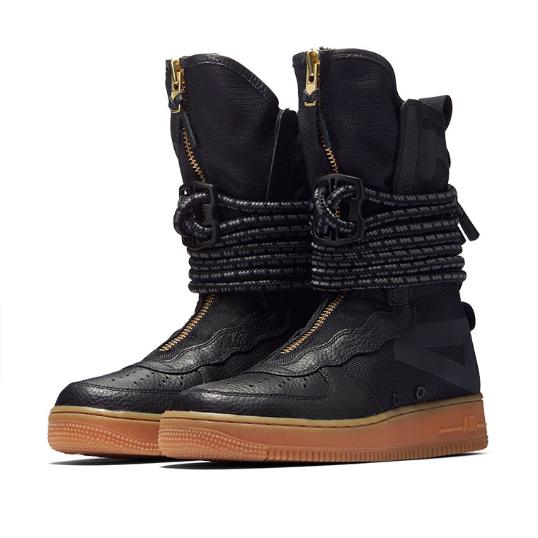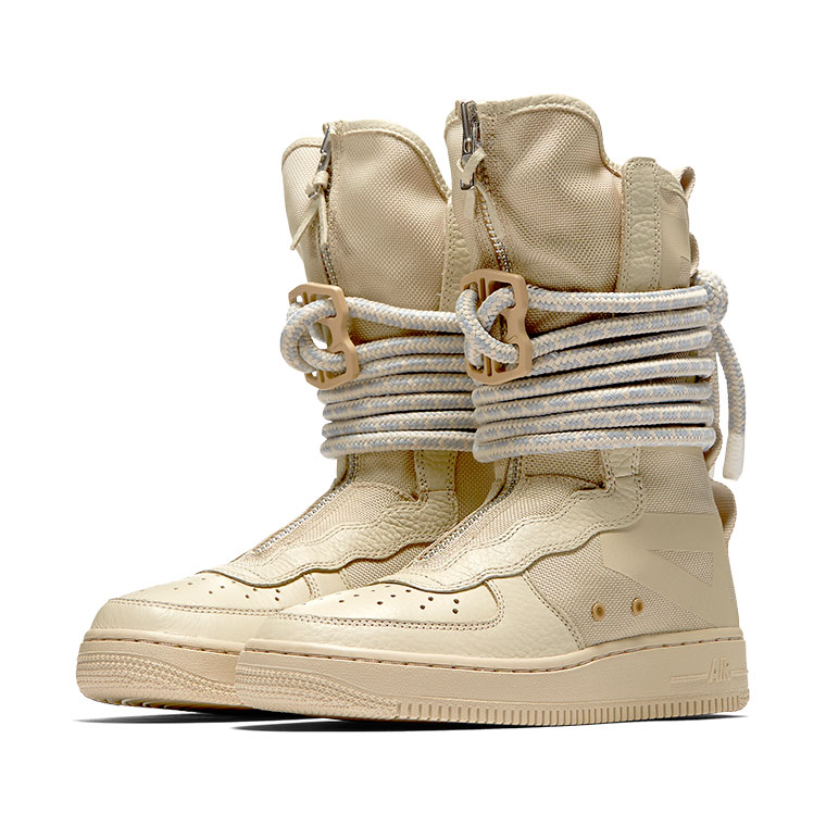 NIKE W SF AIR FORCE 1 HIGH. Las SF Air Force 1 High, evolucionaron en altura y se estrenan con un nuevo accesorio de cuerda, que viene en dos opciones, para darle un estilo al calzado de múltiples maneras. La zapatillas también se puede usar sin él.  Vienen sin el swoosh que es reemplazado por la palabra AIR en vertical.