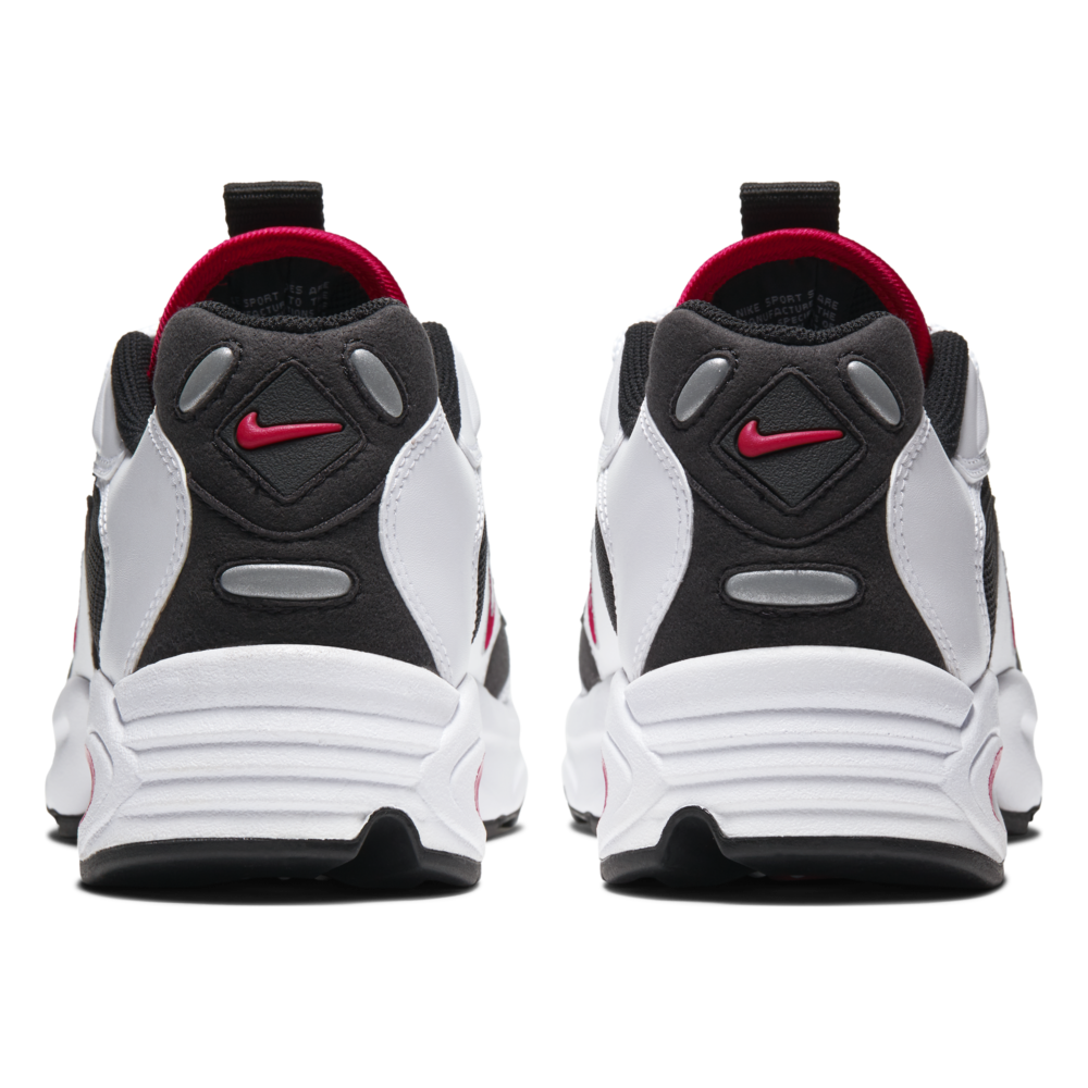 Por primera vez, un clásico de culto emerge de la bóveda después de 23 años. Con la misma forma icónica, materiales y unidad Air visible, este Air Max Triax 96 estilo retro cuenta con todos los detalles simples de los cuales se enamoraron los corredores allá por 1996. Este calzado con una combinación de colores del modelo original del AM Triax 96 luce una parte superior ligera de malla negra con acentos en rojo y suaves revestimientos de cuero blanco y gamuza negra. Además, con sus característicos cordones redondos, lengüeta de malla y presilla de cuero con el Swoosh sobre la puntera de malla, el AM Triax 96 también sobresale entre los lanzamientos de la era Air Max por su unidad Air visible más ligera y proporcionada (a mediados de los 90, estaban de moda las unidades Air Max extragrandes y de largo completo). Aun así, para un estilo con una unidad Air más pequeña, el AM Triax 96 tiene una excelente respuesta ante impactos, y ofrece la comodidad y el estilo que muchos siguen recordando.