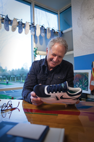 Tinker Hatfield VP de diseño en Nike sosteniiendo la Air Max Zero