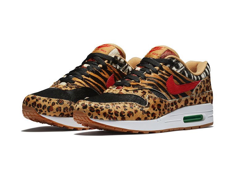 La nueva Air Max 1 Atmos, perteneciente a la familia conocida como «Animal Pack 2.0«, llego al país el sábado 17 de marzo. Esta colaboración fue llevada adelante por la boutique japonesa homónima y se compone de los calzados Air Max 1 y Air Max 95. El Air Max 1 del segundo paquete «Animal» presenta una parte superior con varias impresiones encima de una suela Air Max. La marca de Nike se puede encontrar en el talón y en la lengua, así como en un gran Swoosh rojo en el lateral.