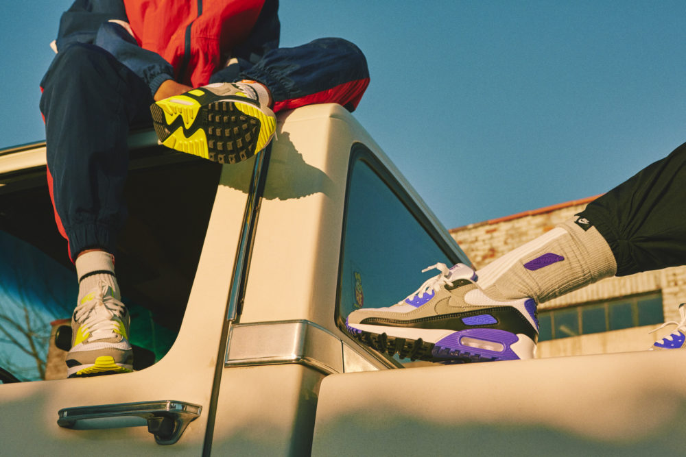 Entre las principales innovaciones de las nuevas Nike AM90 se destacan una capellada reconstruida y una renovación interna de la silueta que incluye el revestimiento original ultra-push de las zapatillas. El primer colorway será el CS, que cuenta con una paleta de color marfil y permite ver en detalle los cambios de lo viejo a lo nuevo. Los colorways adicionales consisten en el gris original de las AM90, negro y blanco y se complementan con tonos verde, rosa y violeta.
