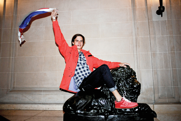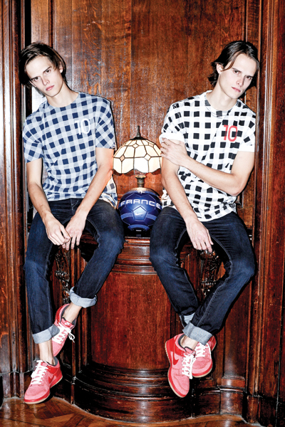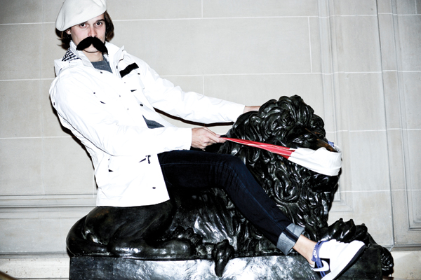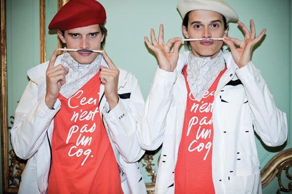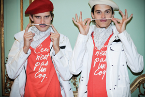 Boinas roja y blanca Agnes B, lápiz “Famous moustaches” remix, pañuelo de París Muji, M65 jackets blancas Nike FFF y t-shirt rojas “Ceci n’est pas un coq” Nike FFF.