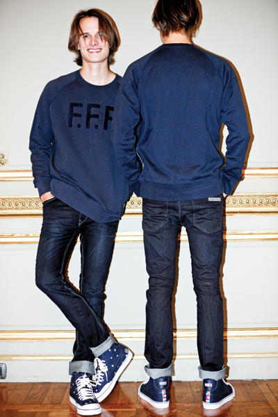 Buzos azules Nike FFF, jeans chupin Herencia Argentina (ksk), zapatillas Nike dunk hi Uniform Experiment azules con estrellas y zapatillas Nike dunk hi Uniform Experiment azules con colour chart.