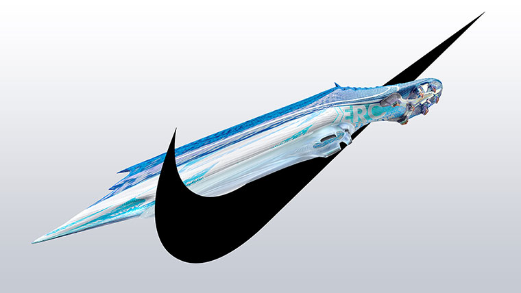 Otra novedad de Mercurial es la innovación en el diseño gráfico, que hasta entonces había sido siempre muy minimalista. Una de las principales actualizaciones estéticas que incorpora es la modificación en el branding del Swoosh, algo completamente nuevo para Nike Fútbol. Hubo también un cambio en la caída del logo ubicado en el lateral del calzado, que desciende hacia los tapones y continúa debajo del pie. Más grande y sin terminación, está inspirado en las zapatillas de running Vaporfly y Zoomfly, en alusión al concepto de velocidad que busca transmitir el botín. Además, el slogan ícono de Nike, “Just Do It” y el apodo del botín, “Merc”, están agregados en la parte del talón, mientras que la frase “Nike Football” figura en una gama de idiomas en toda la placa.