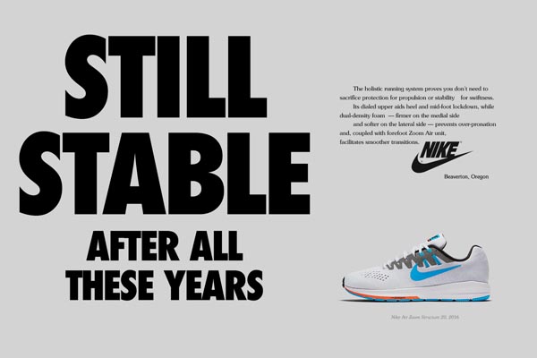 A mediados de los años 70´s, el denominado «boom del running» avanzaba en Estados Unidos lo cual llevó a mayor demanda en la evolución y diversificación del calzado de los atletas. Esta realidad, combinada con un mayor conocimiento de la sobre pronación (el pie gira hacia el interior en la pisada) llevaron a Nike a buscar una solución de mayor estabilidad. Así, Nike Air Structure, la zapatilla más estable de Nike, debutó en 1991.