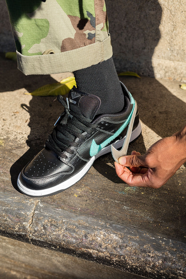 El lanzamiento de esta nueva línea de calzado forma parte de la segunda colaboración de Nike SB con Diamond Supply Co., una empresa que fundó Nicholas Tershay en 1998 y que comenzó como distribuidora de productos de skate de terceros para luego convertirse en una marca propia.