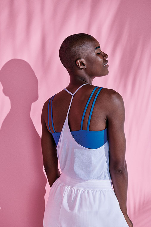 La nueva propuesta de Nike incluye una musculosa, un bra, un short, un par de zapatillas y una campera que se transforma en bolso para guardar todas las prendas. Campera Nike Dry Training: una cinta en la cintura permite ajustar el calce. La tela tejida perforada permite que sea respirable y se puede estirar en cualquier dirección.