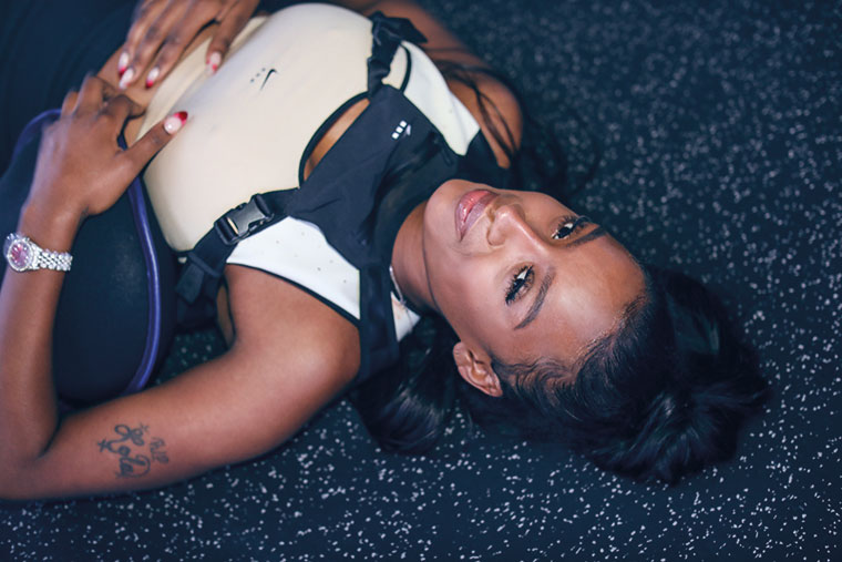 La bailarina Lisa descansado después de una ardua sesion de entrenamiento y estrenando el nuevo bra y mochila/ pechera de MMW