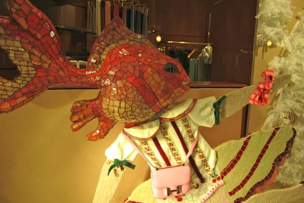 La firma francesa propone que una vez al año en todas sus sucursales alrededor del mundo, exponga un artista plástico una obra especialmente creada para esta ocasión acompañándose de elementos propios del universo Hermès. Esta obra de Nushi que ahora puede observarse al pasar por el local de Av. Alvear 1981, es el cierre de un ciclo, el que comenzó con su muestra Taxidermia….