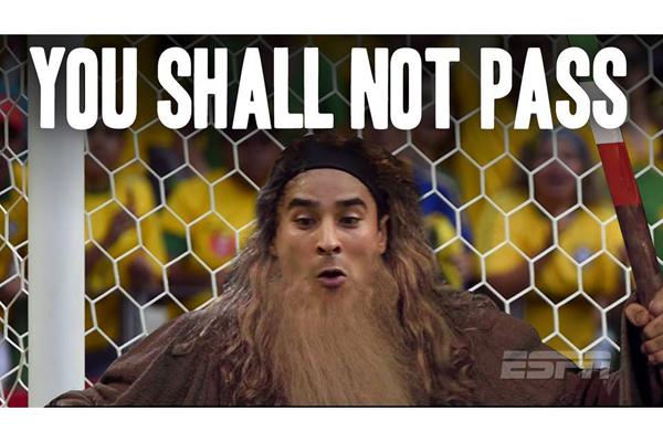 En Fortaleza, evitando la caida de su arco en varias oportunidades. Por esto en internet ha explotado con imagenes muy ocurrentes.
