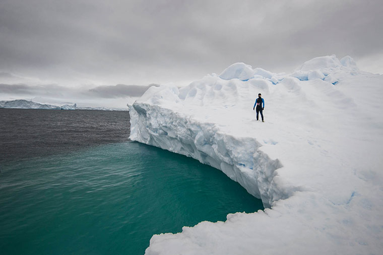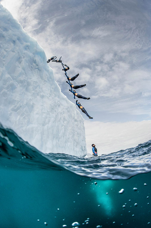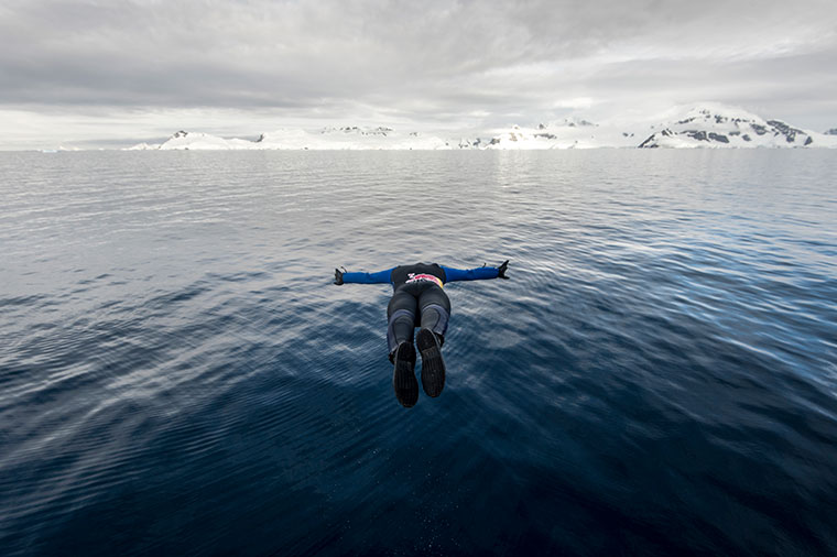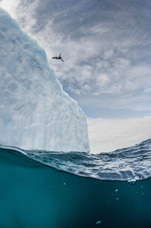 “Por momentos cuando estaba al interior del buque escuchaba crujir los glaciares mientras se desprendían grandes bloques de hielo o icebergs, similares a los que yo buscaba para saltar”, cuenta. Hasta que por fin a la distancia se logró divisar una gran masa de hielo flotante, la cual tenía las características adecuadas para que el 13 veces campeón mundial de clavados de gran altura, saltara hacia las heladas aguas de la Antártida.