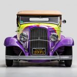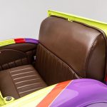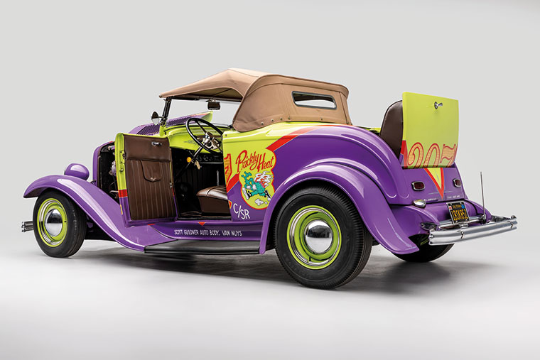 Pintado con una impactante librea púrpura y verde que oscurece las líneas del auto, Prickly Heat se burla de las “reglas” de la pintura de Hot Rod Adoptando el aspecto de los autos stock de principios de los años cuarenta. Un personaje de dibujos animados de un “cactus corriendo con su culo en llamas” inspiró el nombre del auto, y a la puerta se le dio una serie de tres dígitos con hojas de oro de números impares porque los números pares son “demasiado felices”.