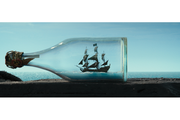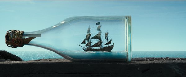 El amado barco Perla Negra de Jack Sparrow encerrado en una botella.