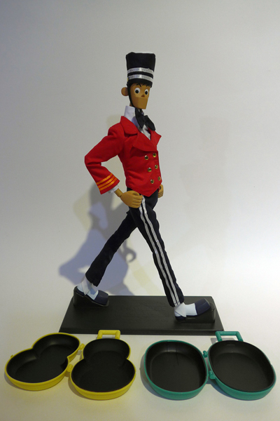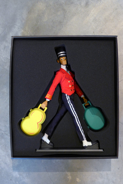 En esta colaboración, Lau pretende respetar la herencia de la marca y el carácter altamente clásico Porter mientras que le da un toque de su firma táctil para resaltar el espíritu de la ocasión. La figura de acción de 12 » tiene dos piezas de equipaje, donde se lee «8» y el otro lee «0» para enfatizar los 80 años.